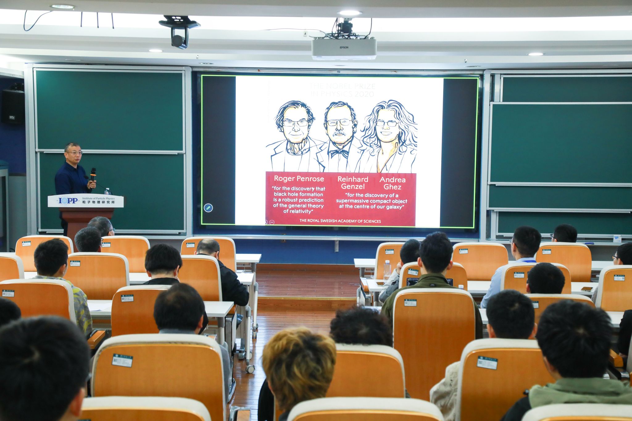 报告从引力理论的历史脉络出发,系统梳理了从伽利略相对性原理到爱因斯坦广义相对论的理论演进。陈教授通过生动的图示展示了黑洞作为极端相对论天体的独特性质,并结合近年来重大科学发现展开深入讲解。