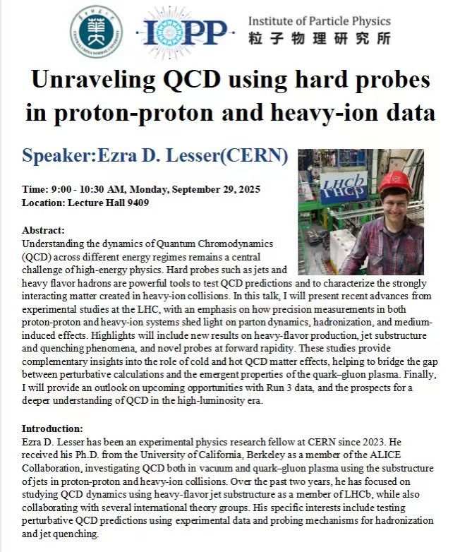 Ezra D. Lesser has been an experimental physics research fellow at CERN since 2023. He received his Ph.D. from the University of California, Berkeley as a member of the ALICE Collaboration, investigating QCD both in vacuum and quark–gluon plasma using the substructure of jets in proton-proton and heavy-ion collisions. Over the past two years, he has focused on studying QCD dynamics using heavy-flavor jet substructure as a member of LHCb, while also collaborating with several international theory groups. His specific interests include testing perturbative QCD predictions using experimental data and probing mechanisms for hadronization and jet quenching.